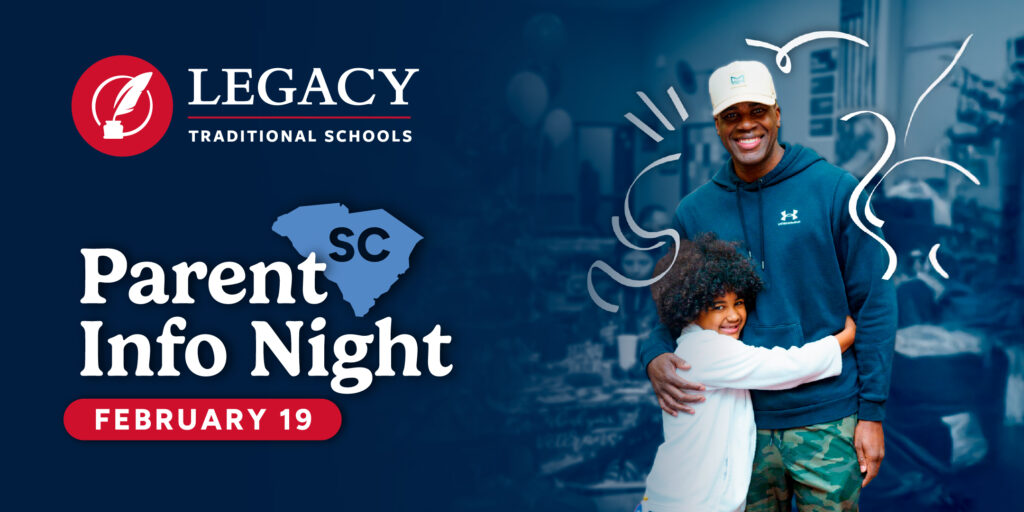 Discover why Legacy Traditional Schools – South Carolina is the perfect fit for your family at our upcoming Parent Info Night, where you’ll meet our dedicated admin and explore our well-rounded K–8 academic experience. Get a first look at our future 87,000-square-foot campus opening in Columbia, SC in 2026 and learn about enrollment, uniforms, student programs, and more. We can’t wait to connect with you, answer your questions, and share what makes Legacy a truly exceptional place for students to thrive.